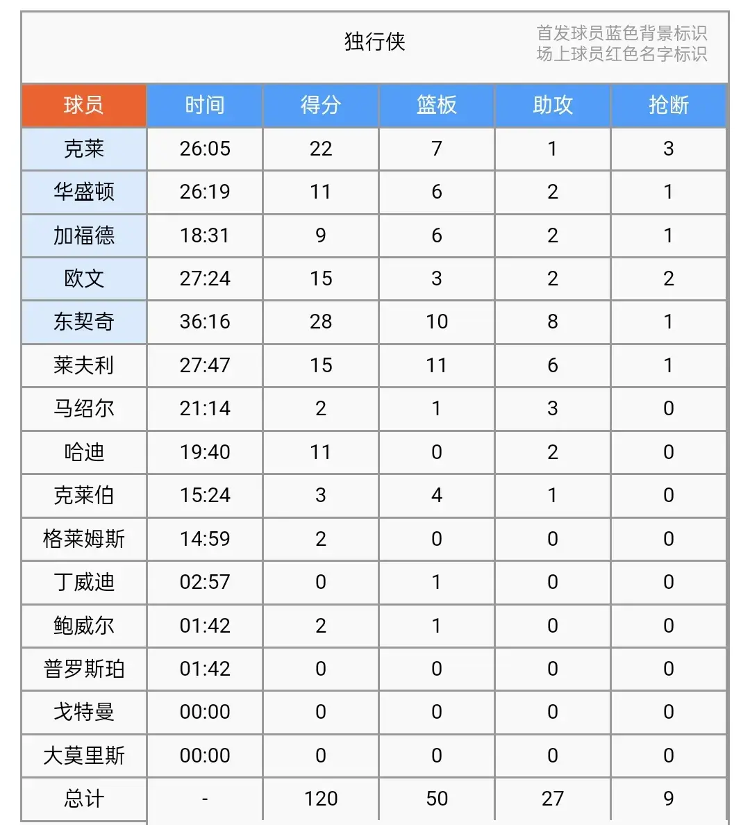下半场休息归来东欧 克莱组合发威联手命中4记三分,独行侠轰出22-6的攻势拉开比分;但仅仅一个暂停回来马刺就回敬17-5的攻势追上比分。但末节独行侠外线彻底打疯,再送一波15-2的攻势将优势拉大至20分以上奠定胜局。最终,独行侠主场大胜马刺。