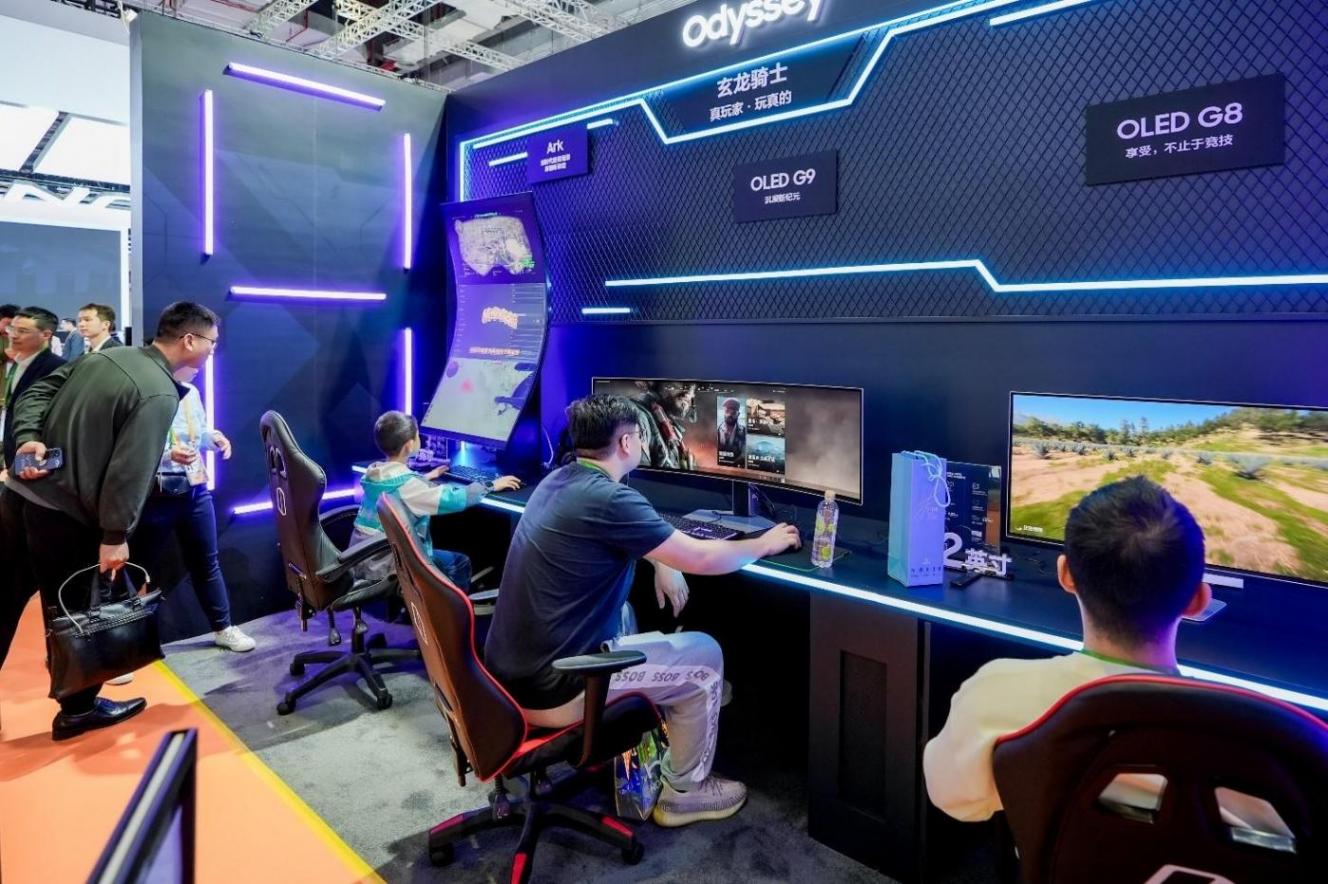 三星oled展区,观众进行游戏体验