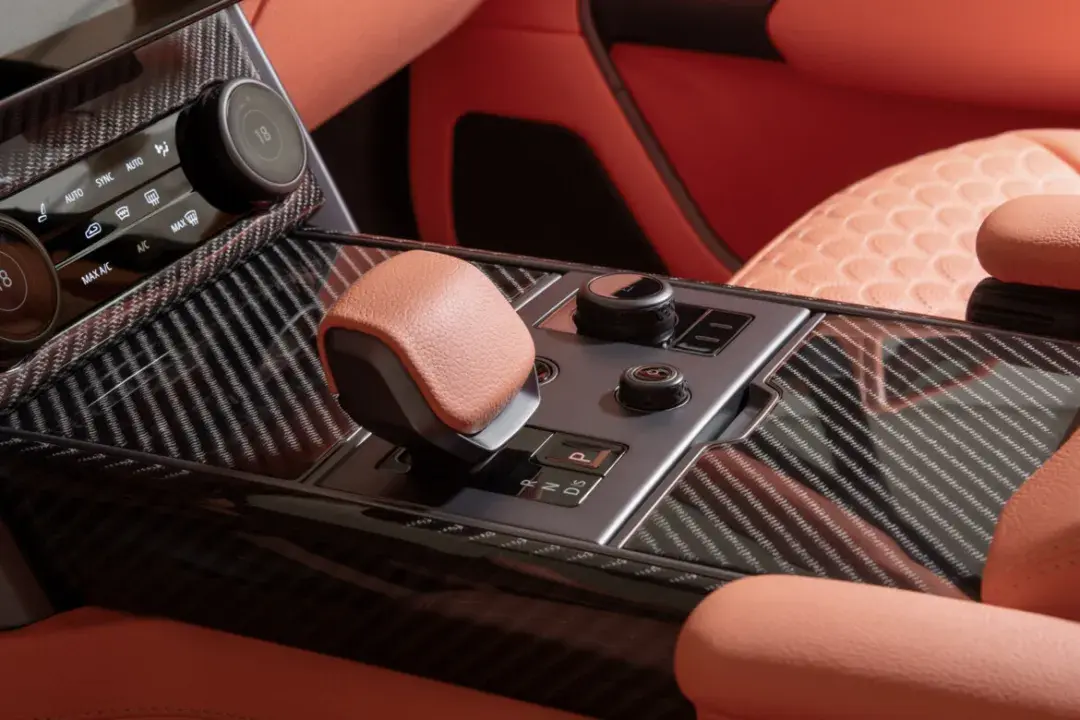 内饰是巴博斯拿手好戏之一,全车采用大量粉色高档皮具进行包裹,全车多个部分采用了brabus seashell diamond绗缝工艺,细致程度包含了地毯和后备箱,此外还有部分碳纤维饰件点缀,凸显运动感。