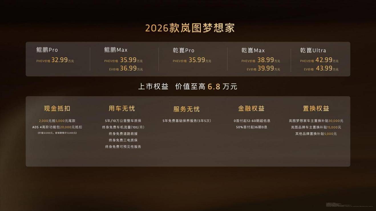 近日(2025年9月15日),岚图汽车以“梦想第一”为主题,在上海举行了2026款岚图梦想家上市发布会。作为全球首款同时搭载800v智能超混系统、华为ads 4高阶智驾、鸿蒙座舱5及智能后轮转向的新能源mpv,新车共推出鲲鹏、乾崑两大智能化系列,覆盖插混与纯电两种动力,官方指导价格32.99万-43.99万元,并同步推出“上市即交付”政策及多项购车权益,直接冲击高端新能源mpv市场冠军宝座。