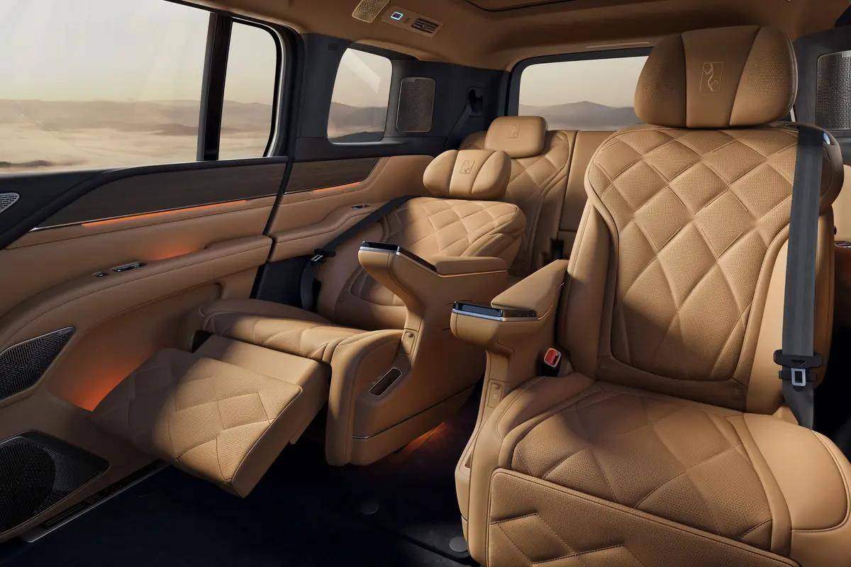 此外,一般而言,行政级车都以二排为尊,仰望u8l鼎世版二排标配座椅角度最大150°可调的双零重力座椅,且拥有280mm膝部空间,这是能够和商务mpv媲美的数字。