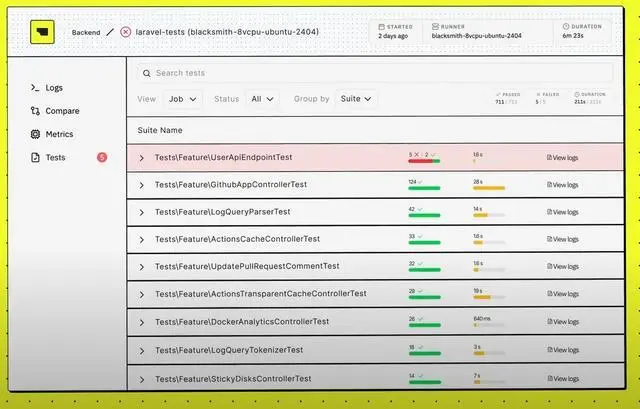 除了ci/cd加速,blacksmith还提供测试分析与可观测性功能,帮助开发者识别性能瓶颈。创始团队透露,传统ci阶段需消耗数百台机器和大量算力成本,而blacksmith通过自有硬件掌控成本结构,从而优化毛利率并提高扩展空间。