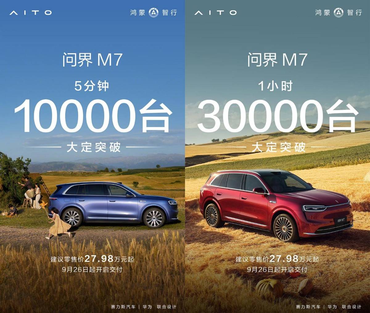 赛力斯联合华为发布,全新问界m7上市5分钟,大定破1万台,1小时大定破3万台。如果拿28万台小定转化率说事,那多少有点挑事了。从哪个角度来说,1小时大定破3万台都是一个不错的成绩。