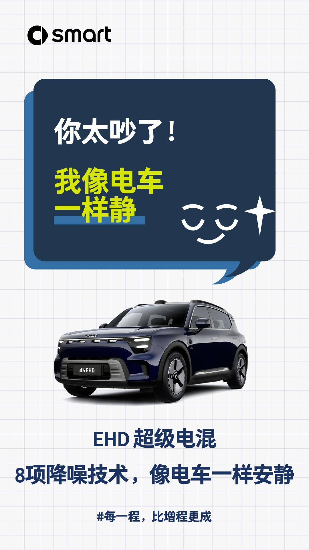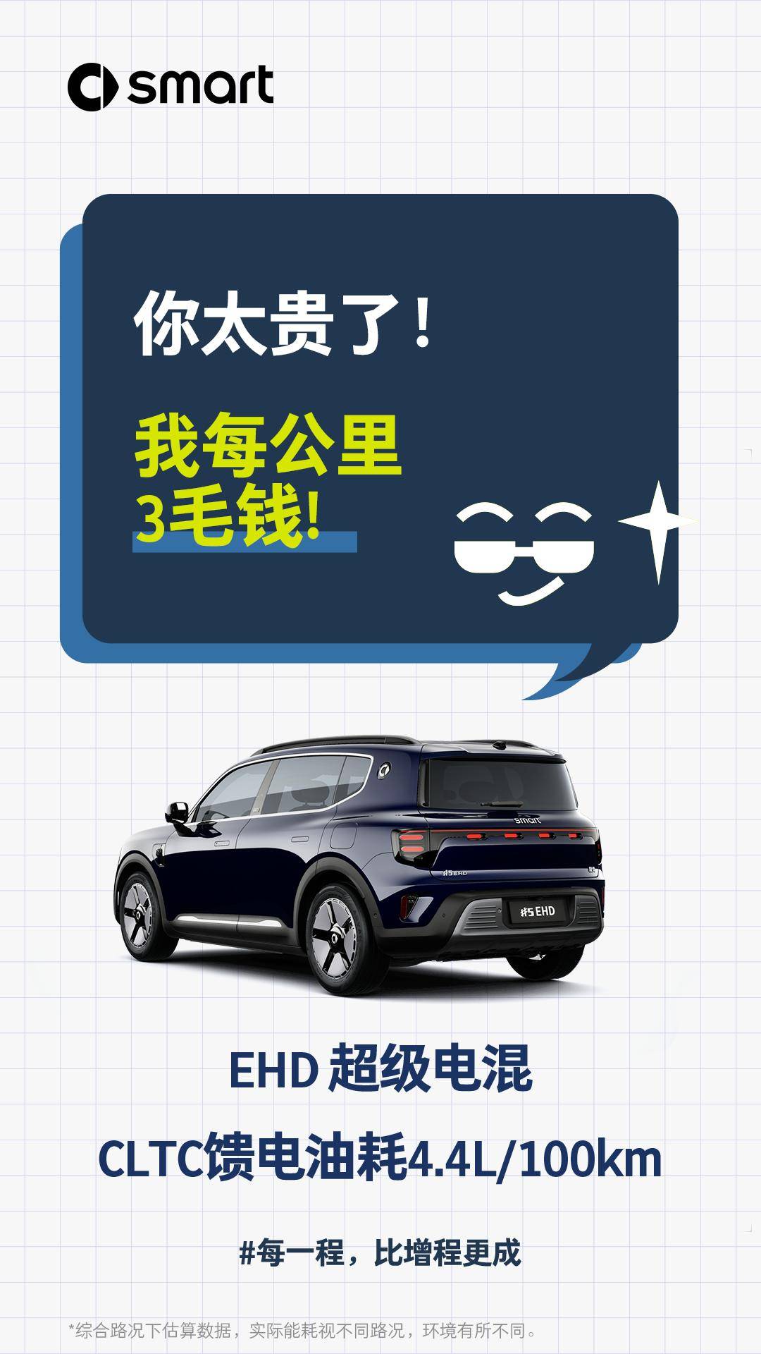 smart #5 ehd超级电混集最新一代雷神电混2.0技术实力与纯正奔驰基因于一身,以“超省、超顺、超猛、超静”等优势卖点解决增程痛点,满足“5 2 7”全场景出行需求。