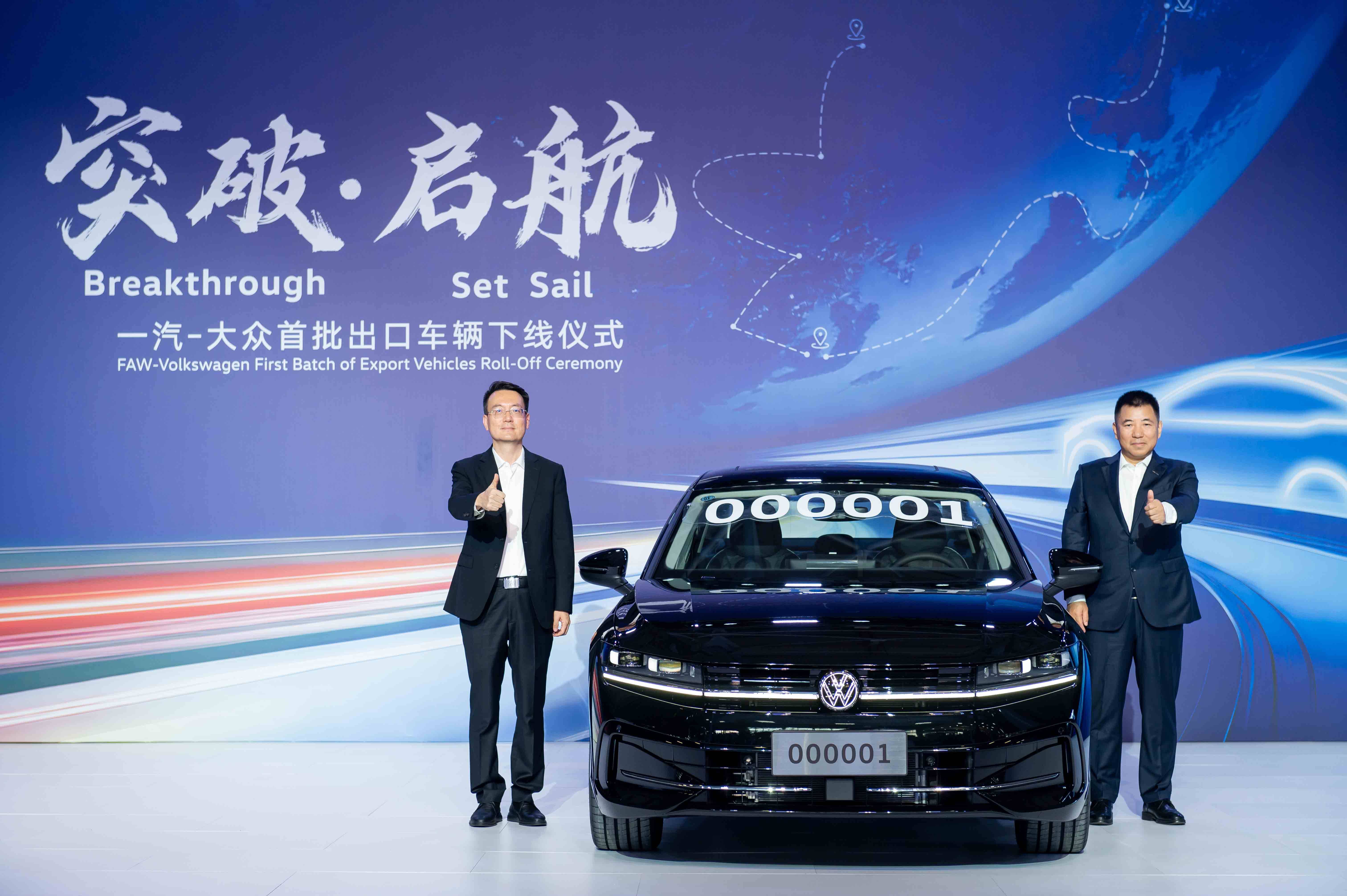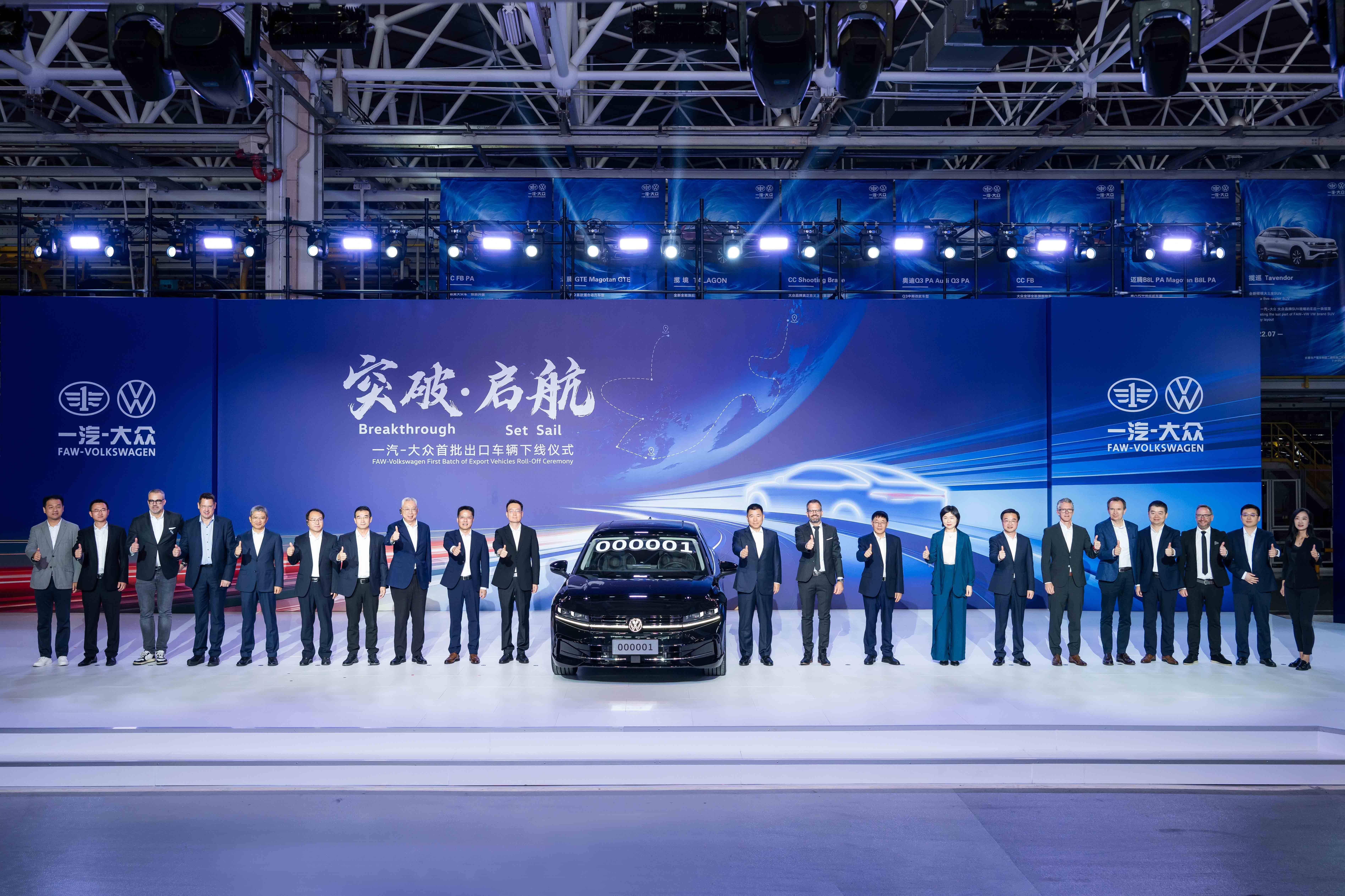 仪式现场,编号“一汽-大众出口000001”的首车亮相舞台,陈彬向大众汽车品牌中东总经理matthias ziegler交付钥匙,顾刚与刘亦功为车辆授牌,一系列流程完成了从产品下线到海外交付的关键衔接。据了解,这批车辆将于9月28日从上海港启程,11月登陆中东市场。