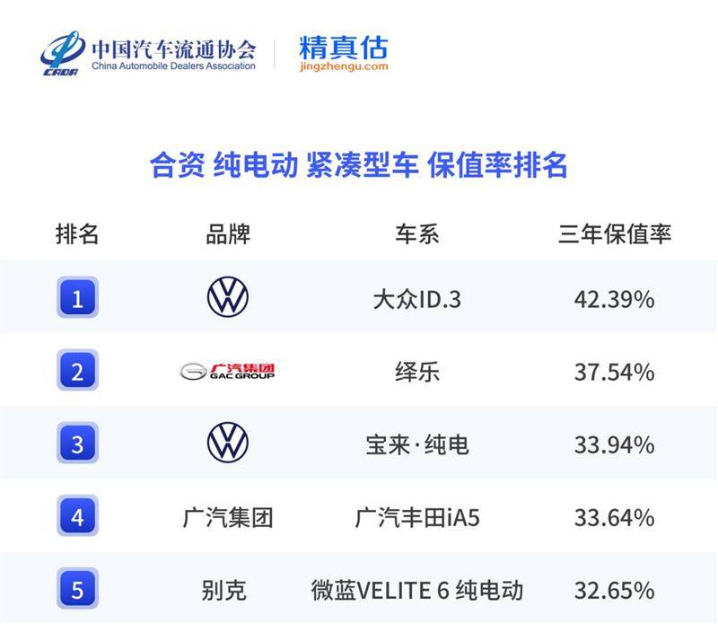 在汽车消费领域,保值率一直被视作品质价值的“晴雨表”。中国汽车流通协会和精真估联合发布的《2025上半年中国汽车保值率研究报告》显示,上汽、、id.3、帕萨特插电混动等多款车型位列各自细分市场榜首。