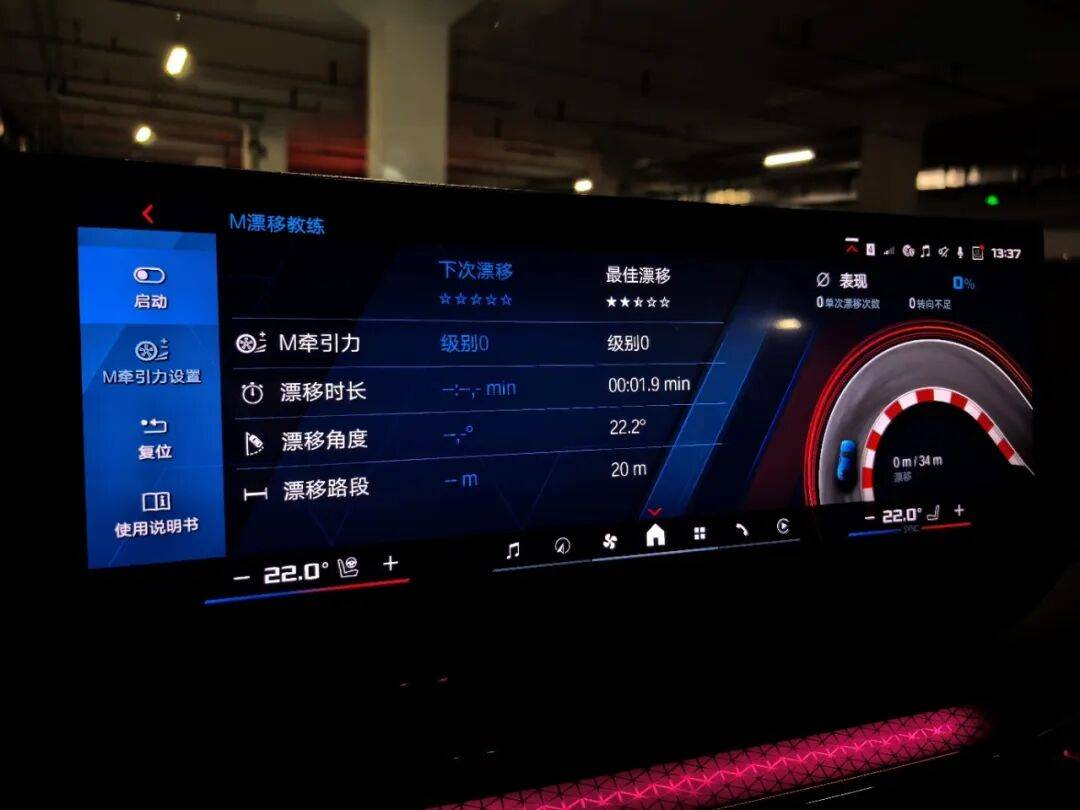 而当把dsc调至off,四驱系统调至2wd后,这台m3就化身为了一台漂移利器,10段可调的dsc辅助,可以让驾驶员轻松地完成各种角度的漂移,车尾在此模式下会变得极其灵动,差速器也会很及时地进行锁止,以让车尾能更快、更顺的进行滑动。配合上m漂移教练功能,我想“小白”也能轻松练习成为大神。