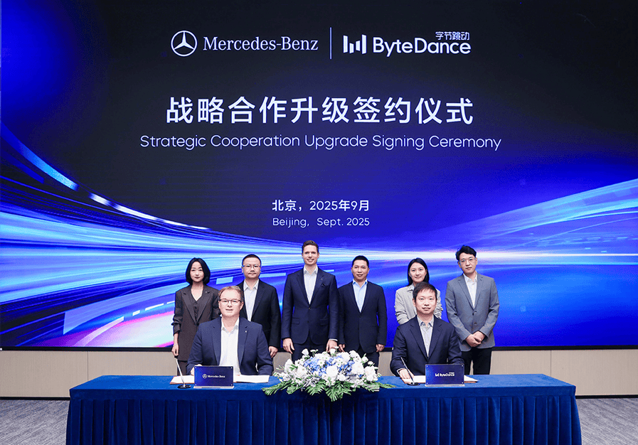 而佟欧福出现的另一个场合:奔驰和北京字跳网络技术有限公司宣布签署升级战略合作备忘录现场,我也注意到一个和别的企业不太一样的信息。