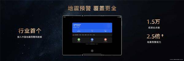 据介绍,接入中国地震局数据后,华为mate xts非凡大师能够实时联通全国1.5万个专业地震观察站点,将地震预警能力提升2.5倍,实现全国重点地区的秒级地震预警。