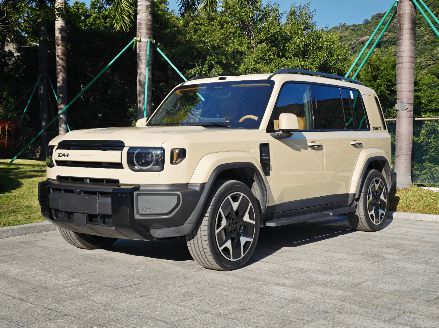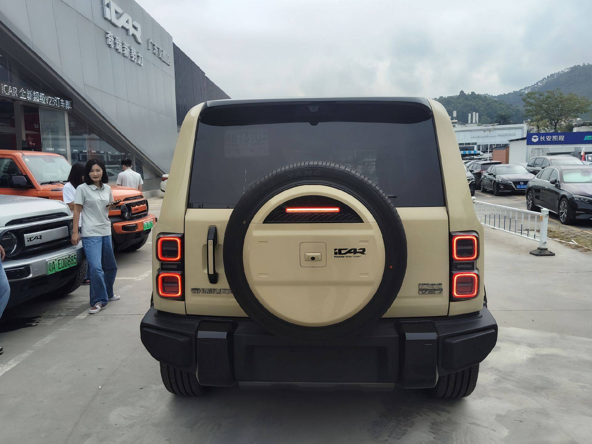 看到icar v27的第一眼,不免给人一种的既视感,方正、硬朗的车头两侧配备方形灯腔 环形灯带,再配合窄条幅式格栅,与路虎卫士的设计风格如出一辙。同时大灯中间还通过车身同色饰板贯穿,加之icar标识,又带来了时尚前卫属性。而粗犷的熏黑前包围也无不彰显野性。另外还可以看到车顶的激光雷达,将搭载猎鹰700 地平线hsd方案,可实现城区/高速辅助驾驶、全场景泊车等功能。
