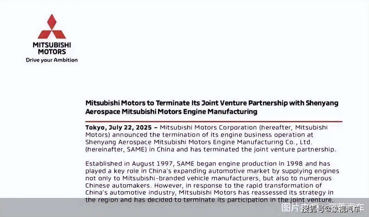 沈阳航天三菱审计数据显示,2024年公司营收只有13.39亿元,净亏损6252.72万元;今年第一季度营业收入3.01亿元,净亏损2367.51万元。长期亏损、业务难以为继的情况下,三菱的退出也是迟早的事情。值得一提的是,早在2019年,三菱就抛售了其在华第二家发动机合资公司——东安动力的股票,退出股东行列。随后,东安动力被并入长安集团。从两家发动机合资公司退出,这意味着三菱汽车从整车到发动机,已全面彻底退出中国。