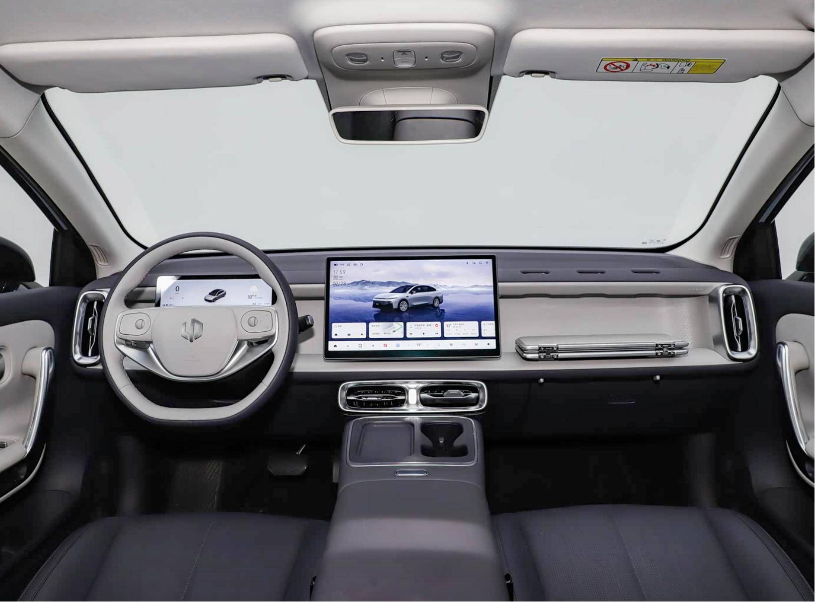 零跑b01内饰简洁明快,中控屏尺寸不小达到14.6英寸,驾驶者面前还有8.8英寸全液晶数字仪表屏,内饰采用大量软包工艺,而且都通过了欧盟oeko-tex standard 100母婴级认证。值得注意的是,车机芯片根据配置不同分为两种,中低配为骁龙8155,高配为8295p,内置leapmotor os 4.0 plus交互系统和双ai语音大模型,支持deepseek 通义千问。