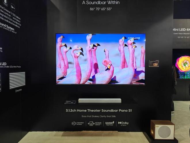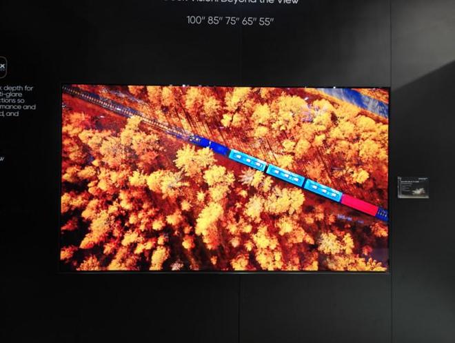 首先在画质部分,电视采用其自研的黑晶臻彩屏,同时结合auraminiled背光技术。该屏幕设计并非单纯追求参数的提升,而是更侧重于用户真实的家庭环境中的观感体验,例如减少反光与眩光影响,以及提升电视的观看视角。在现场演示中,即便从侧面观看,画面亮度与色彩保持度依然稳定,178°无色偏可视角让观者在178°范围内任何角度观看几乎无画质衰减。配合miniled精细化控光,高亮画面峰值亮度可达2800nits,同时暗部层次依旧清晰。