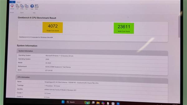 1月9日消息,在windows on arm阵营,终于拥有了足以在性能上正面硬刚macbook pro顶级芯片的处理器,骁龙x2 elite extreme在geekbench 6.5实测中跑出了单核4072分、多核23611分的惊人成绩。