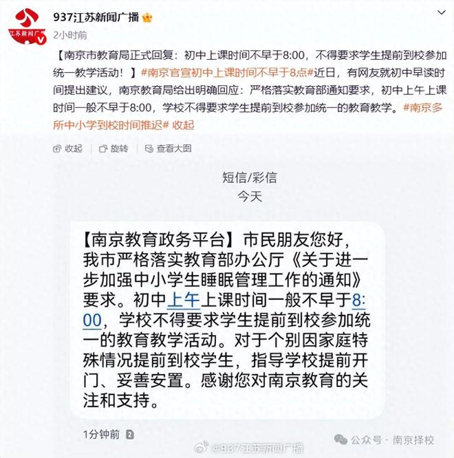 与此同时,南京多位家长也纷纷爆料相关情况。有家长称,学校一早便发布通知,告知以后没有早读了,学生的到校时间调整为7:50 - 8:00。这一通知如同在平静的湖面投下了一颗石子,在家长群体中激起了层层涟漪。有的家长对此表示支持,觉得这样孩子能多睡一会儿,精神状态会更好,更有利于后续的学习;而有的家长则担心没有早读会影响孩子的学习进度和知识积累。