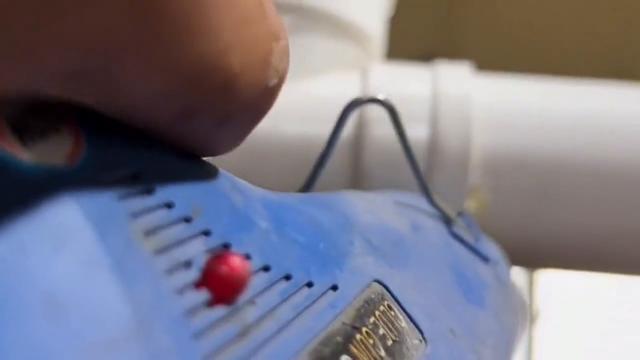 朋友们,我们看这个热熔胶要是冷却了,比玻璃胶粘的都好,所以这个效果比玻璃胶、比胶带都好。所以这个方法,我们每一个人都可以操作修漏水,特别的方便。