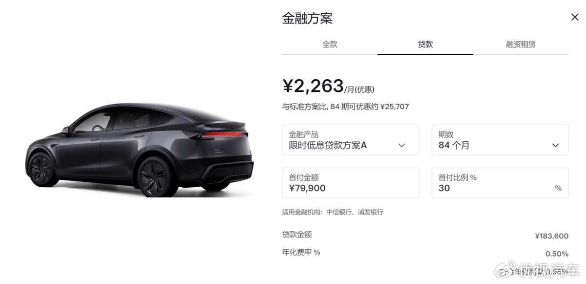 那这个“7年低息”到底划不划算呢?我们还是先用特斯拉来举例简单计算一下。
