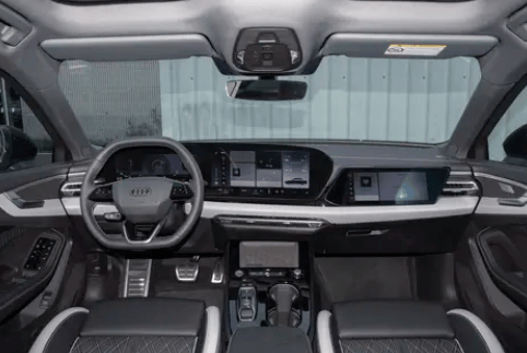 内饰延续奥迪科技豪华风格,提供米色和 “琥珀焰红” 两种主题配色。中控台采用曲面一体屏设计,11.9 英寸仪表与 14.5 英寸中控屏无缝衔接,搭配 10.9 英寸副驾娱乐屏,内置专为中国市场优化的语音助手。全系标配的云感座椅根据国人身材定制,前排配备可调节腿托和 118 毫米宽侧翼,支持按摩功能;后排座椅角度增至 28 度,提升乘坐舒适性。9 段式全景天幕集成 102 颗 rgb led,可与氛围灯联动调色。