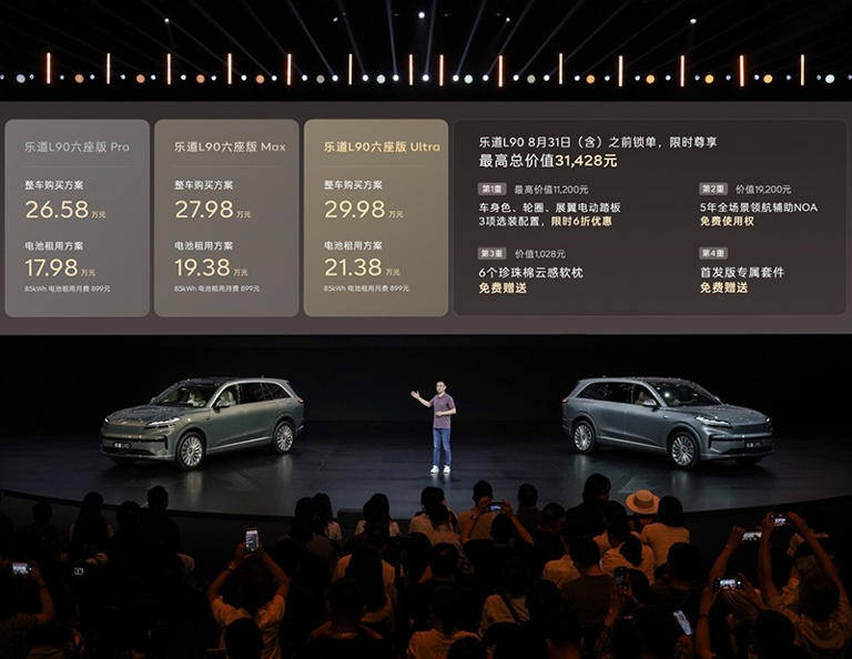 7月31日,蔚来旗下乐道品牌推出旗舰suv乐道l90,和同期友商车型一样,这台车也被定位于智能大空间家庭用车,基于全域900伏高压架构打造,有6座和7座两种布局,分为pro,max和ultra三种配置车型。8月5号开始,六座版开启交付,七座板将于9月下旬交付。