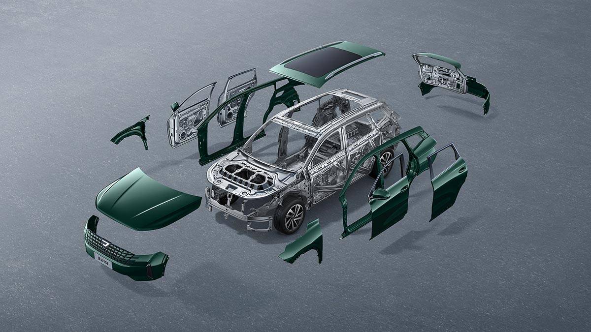 捷达vs8整车使用高强度钢的占比达到了80%,其中热成形钢的占比达到了26%,包括车辆的前/后防撞梁、a/b柱以及座椅框架。