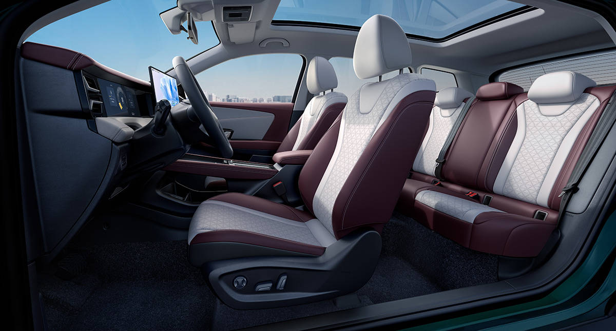 座椅采用了人体工程学设计,主驾驶席座椅支持6向电动调节和4向腰托调节,同时还具备座椅加热功能(覆盖座垫及靠背)。而全景天幕搭配电动遮阳帘的设计,也在为车内乘员提供广阔视野的同时,有效降低了阳光直晒对车内温度的影响。