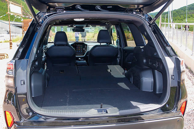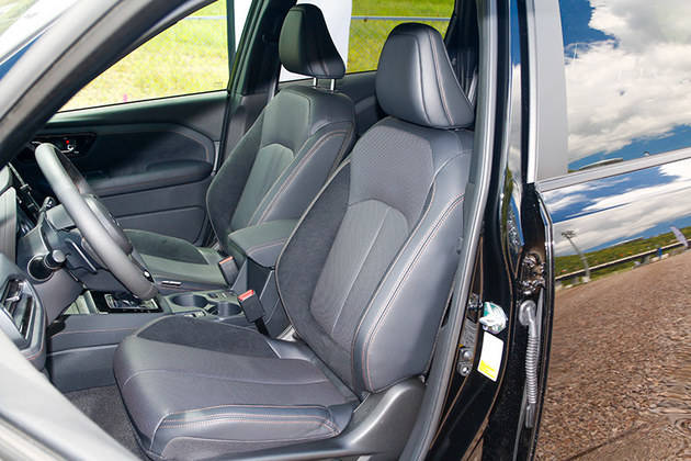 皮质座椅采用奥司维科技面料,座椅宽大舒适,并且支撑度十分优秀。全新森林人的空间表现非常优秀,笔者身高183cm,前后排头部空间均可以达到一拳有余,并且后排可以从容跷二郎腿。此外,新车前后排还均提供了座椅加热功能。