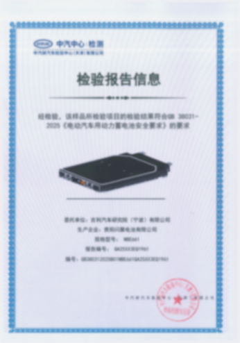 参考图片:吉利银河e5电池新国标认证证书