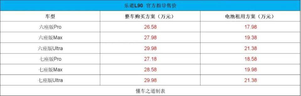 7月31日,乐道l90 正式上市,整车购买方案售价26.58-29.98万元,电池租用方案售价17.98-21.38万元。作为乐道品牌的第二款车型也是乐道品牌的旗舰产品,新车基于蔚来的nt3.0平台打造,定位为大型suv,提供六座和七座两种座椅布局。
