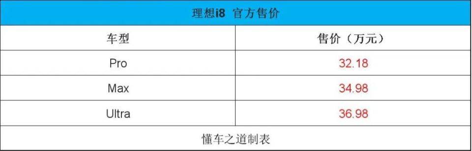 7月29日,理想i8正式上市,新车共计推出3款车型,售价32.18-36.98万元。理想i8采用前后双电机,综合功率544马力(400千瓦),前电机150千瓦,后电机250千瓦,配备宁德时代或欣旺达的三元锂电池,cltc纯电续航670km和720km,电耗分别为14.6kwh/100km和14.8kwh/100km。新车采用电动四驱,前双叉臂式独立悬架 后多连杆式独立悬架,0-100km/h加速时间4.5秒。