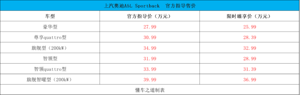 8月1日,上汽奥迪a5l sportback正式发布上市,共推出6款车型,售价区间为27.99-39.99万元,限时臻享价25.99-36.99万元。