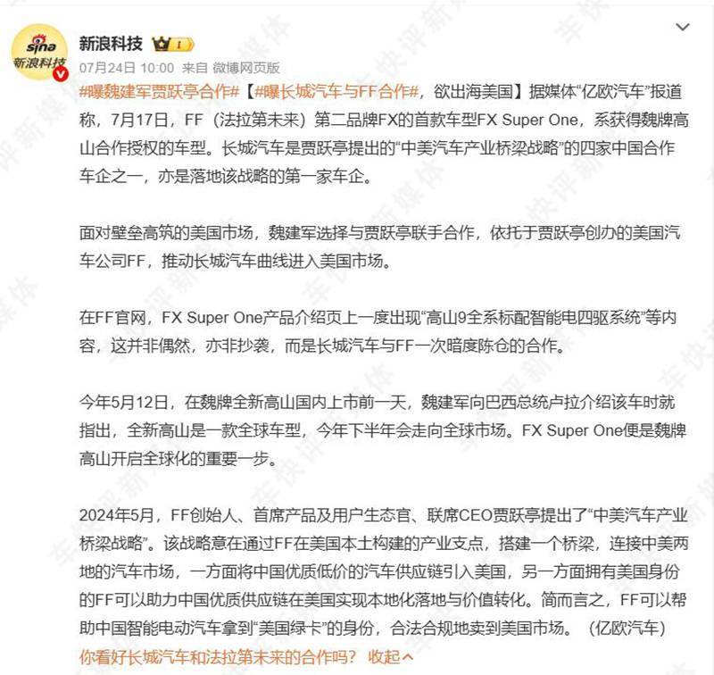 从fx super one的订单情况来看,美国人民似乎对于贾跃亭的升级版“魏牌高山”很是青睐。