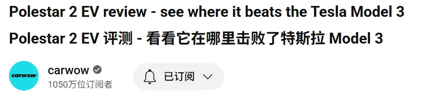 油管超级大v carwow对极星2的评测标题就是,看看它在哪里击败了特斯拉model 3。