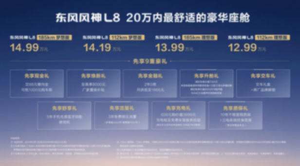 8月11日,汽车商评从东风风神官方处了解到,旗下全新战略车型——东风风神l8正式开启预售,新车共推出4款车型,预售价12.99-14.99万元。