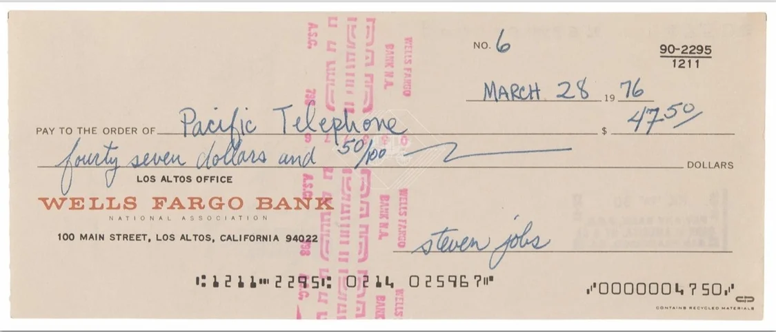 不过该支票的罕见之处,在于背面载有苹果三位联合创始人乔布斯、沃兹尼亚克及罗纳德・韦恩的全名与公司地址,尤其是韦恩在公司成立两周后便退出,错失了数百亿美元潜在财富。
