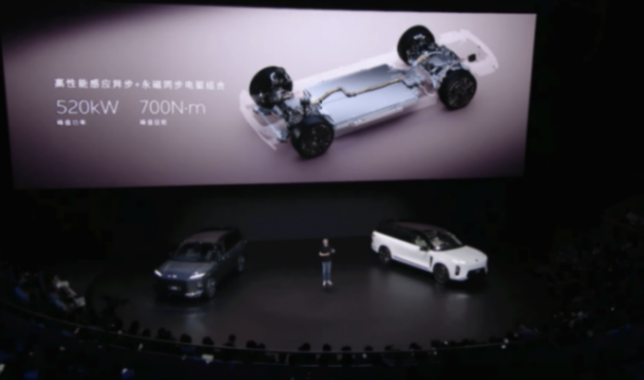 动力上,新车搭载了与蔚来et9同款的双电机四驱系统,前轴为180kw感应异步电机,后轴为340kw永磁同步电机,综合功率高达520kw,扭矩达到700n・m。