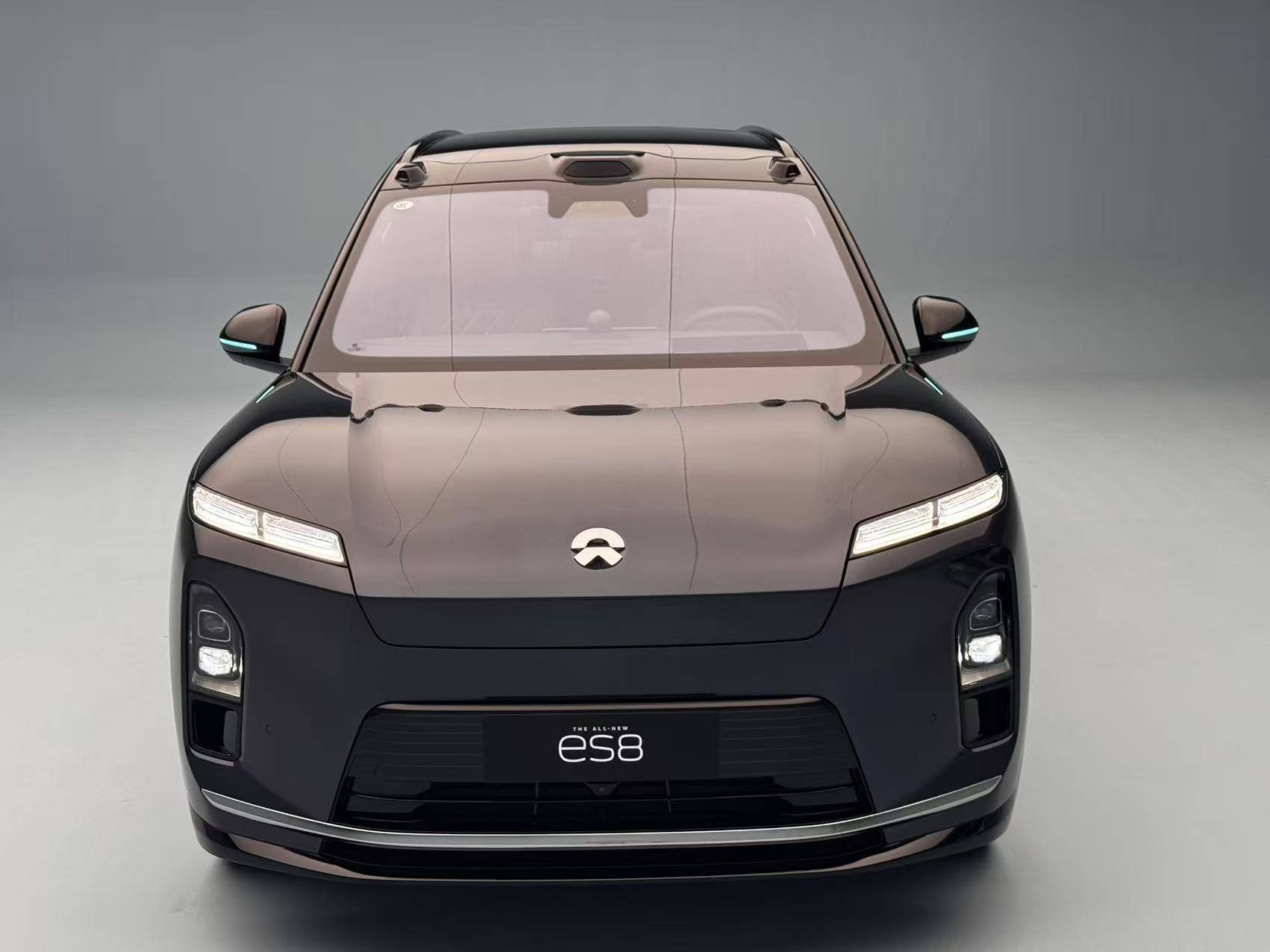 在全新es8身上,我能看到et9和新es6的影子,包括鲨鱼鼻样式的凸出前脸型面,弱化了过去“x”的风格。蔚来工程师也告诉我,这是他们和供应商花了三个月时间完成的挑战,也是目前在售车型里难度最大的一片式a面,整个全铝前机盖有2.24平方米,一体冲压成精准的负角度。