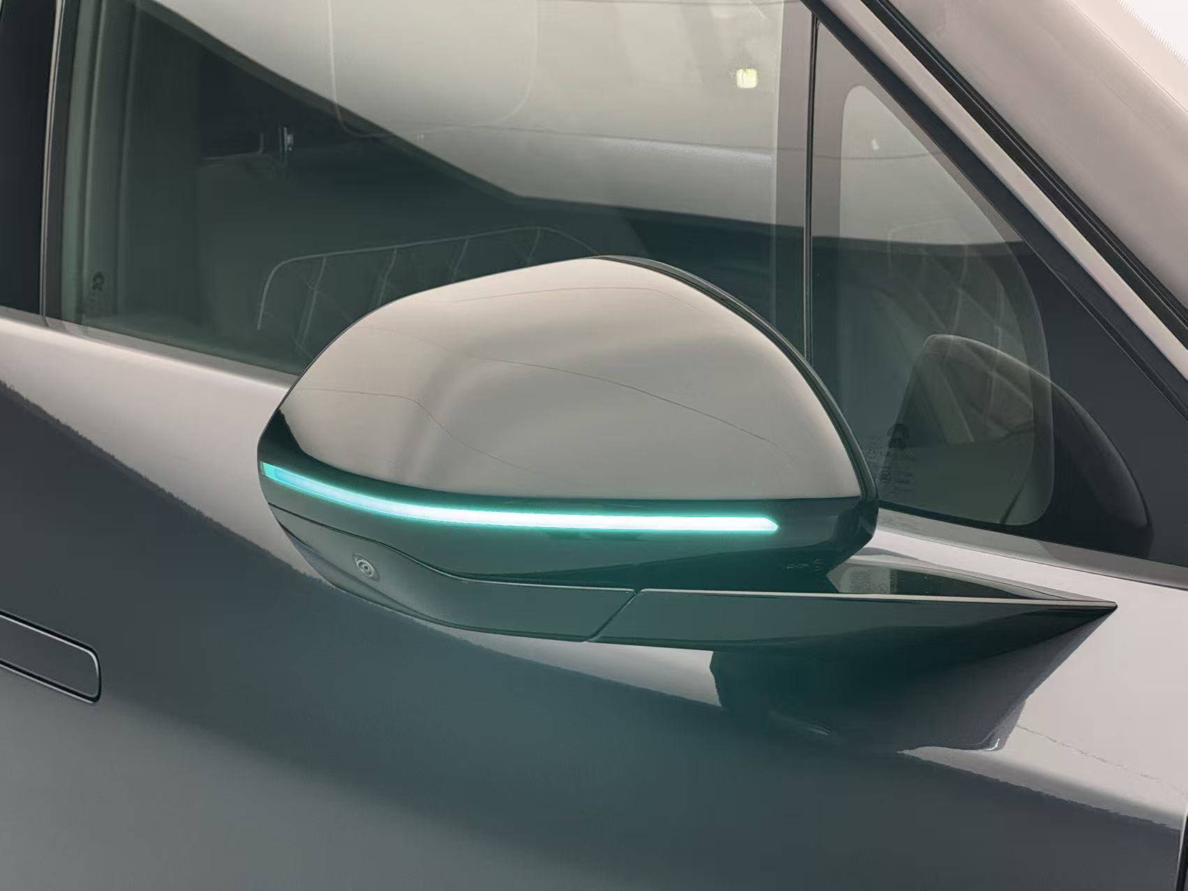 全新es8的侧面还有一些小变化,比如神矶芯片驱动的31个智驾硬件里,多了前翼子板的广角激光雷达,后视镜也有ad小蓝灯。