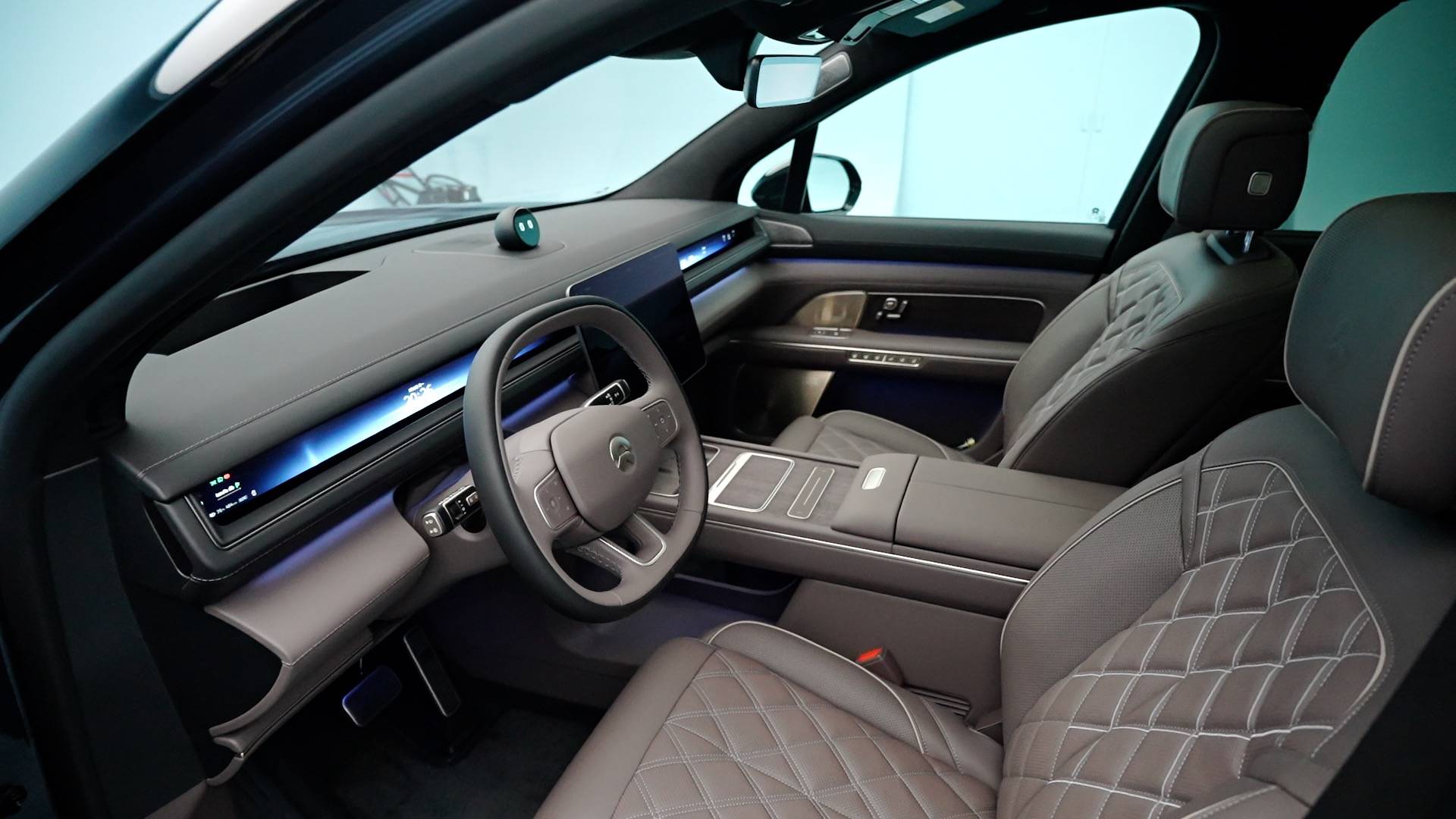 全新es8“老钱”的地方还很多,比如车内用了52平米全包软装,相当于高标准的精装房,其中“山川叠韵”刺绣的nappa皮质座椅就很吸睛。虽然也和et9一样是菱格纹路,但蔚来在suv上选用了更深邃的单缝线,纵向特征线减少到一根,同时靠背侧翼也更收紧,少了行政的严肃,多了商务的豪气。