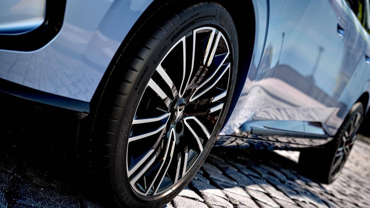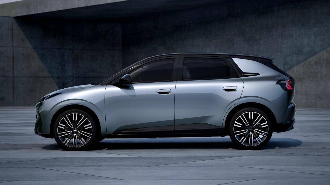 从侧面看,整车型面设计饱满立体,短前后悬的造型能够更大程度的实现空间的释放,同时也在视觉上让新车的体态更显修长。熏黑处理的窗框以及b柱带来了更强烈的悬浮式车顶效果,同时低趴的姿态、熏黑处理的裙边,加上别致的多幅式轮圈,营造了不错的运动氛围感。
