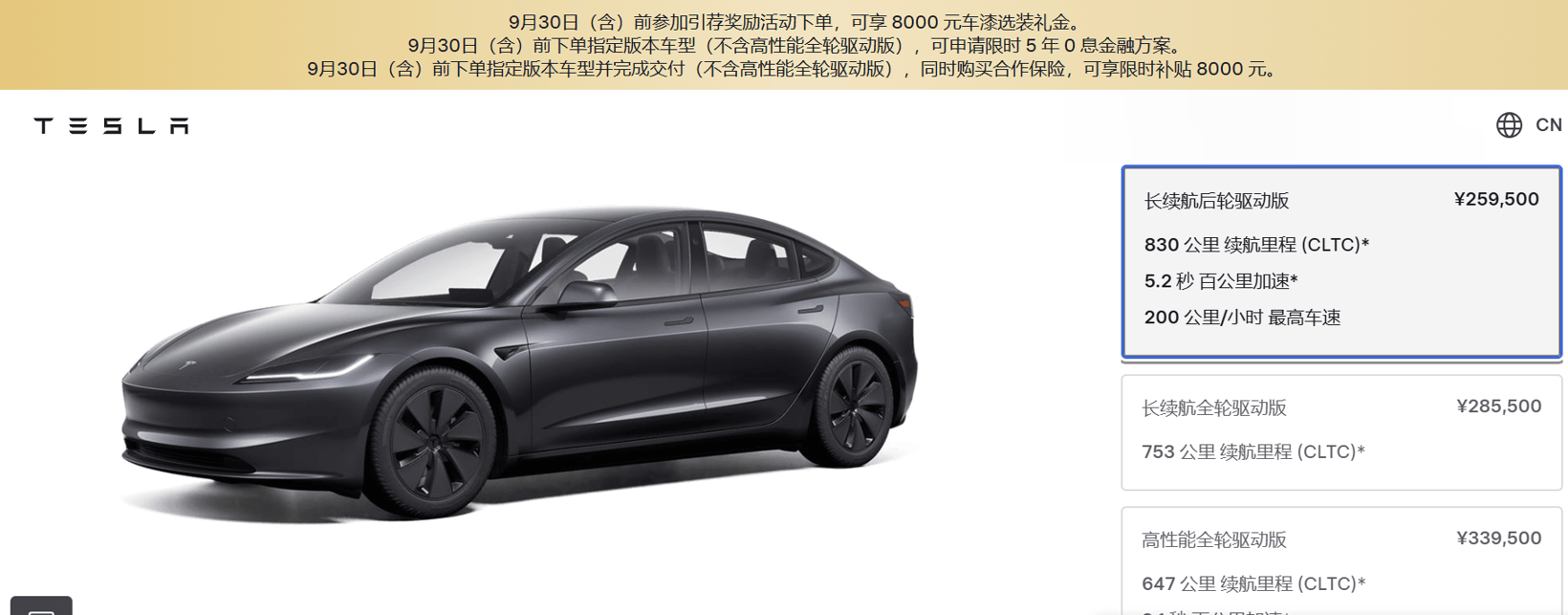 9月1日,特斯拉中国9游会官网更新了model 3长续航后轮驱动版的售价,该车型价格下调1万元,从原先的26.95万元调整至25.95万元人民币。