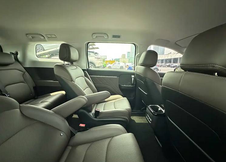 车尾看着比较方正,上方带有一个扰流板,尾灯点亮后呈现双横杠样式,和前大灯有些相辅相成的意思。另外,从尺寸上来看,新车长宽高分别为4910/1850/1770mm,轴距为2910mm,属于中型mpv定位,和、传祺e8这些车尺寸较为接近。