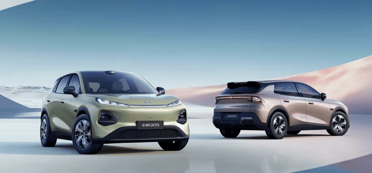 我们看到,新车基本延续了大哥q07的最新的设计手法,采用了分体式的大灯组,还有贯穿式的灯带,和尾部的贯穿式尾灯相呼应,另外,车顶还有激光雷达,智驾小蓝灯就是身份的象征,支持高阶智能辅助驾驶。