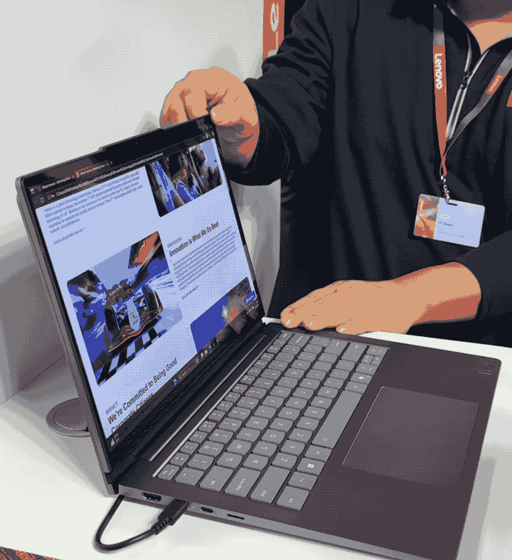 联想已经制造过卷轴、翻转和透明三种屏幕类型的概念笔记本电脑,这次他们发布了thinkbook vertiflex概念机,是业内首款配备14英寸可旋转屏幕的笔记本电脑。在垂直显示模式下,智能手机可以通过联想超级互联(smart connect)无缝连接到pc上,用于传输文件和手机镜像。