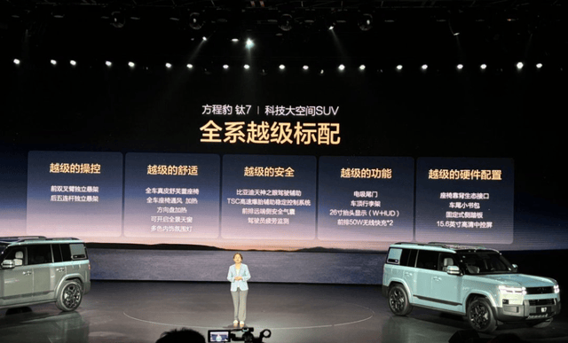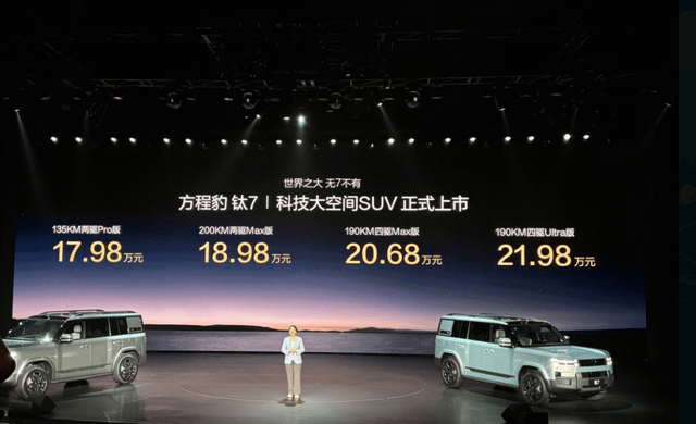 借着钛3畅销的东风,9月9日,方程豹 钛系列第二款车型钛7正式上市,新车共推出4个配置版本,售价17.98万元-21.98万元:同时推出了最高价值超3.6万元的上市权益。