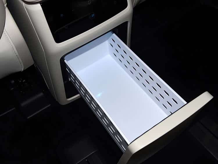 座椅方面,高山7提供nappa真皮座椅,配备通风、加热功能,前两排座椅支持按摩功能,二排座椅配备可收纳小桌板。车内还配备了17.3英寸后排娱乐屏以及容积为12.5升的智能冷暖冰箱,进一步提升了乘坐的舒适性和便利性。此外,车内还提供360全景影像、透明底盘、64色氛围灯,并支持hicar、carlink、carplay手车互联功能。
