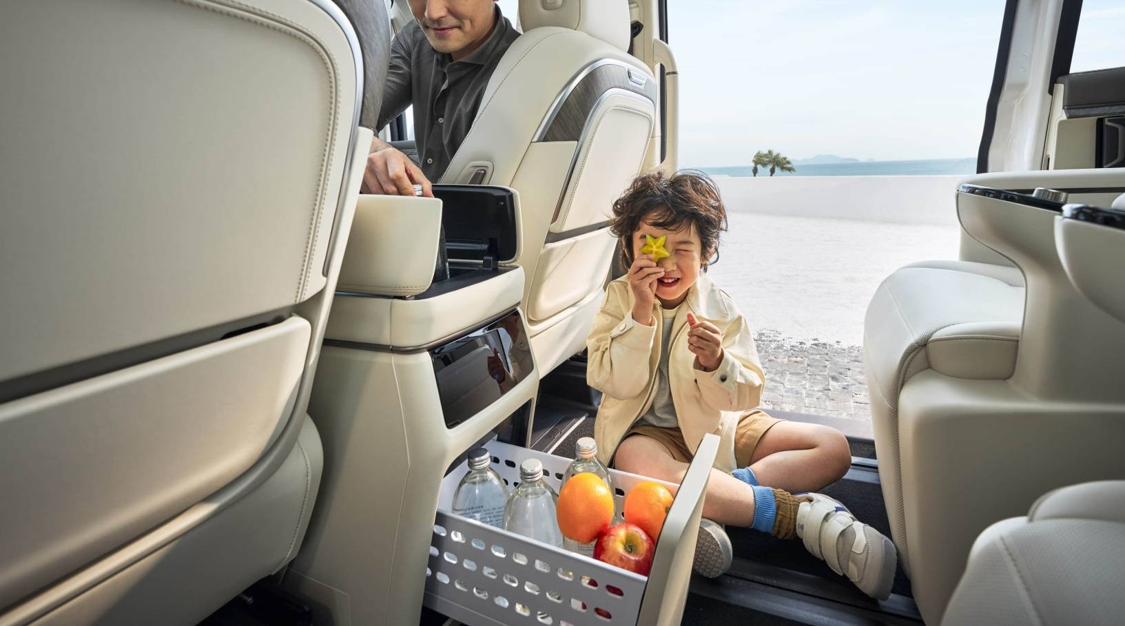 座椅方面,新车采用2-2-3的七座布局,座椅标配3档通⻛加热功能,二排座椅支持两向电动腿托⼀键舒展。高山7还可选装双实体按键零重力座椅,支持⼀键零重力、复位模式。标配10点式按摩/通⻛(含靠背)/加热。此外,新车还配备了冷暖冰箱,净容积为12.5l,冰箱温度范围 0-50℃,三种温控模 式:制冷模式(0-15℃)、制热模式(35-50℃)、保鲜模式(10℃)。