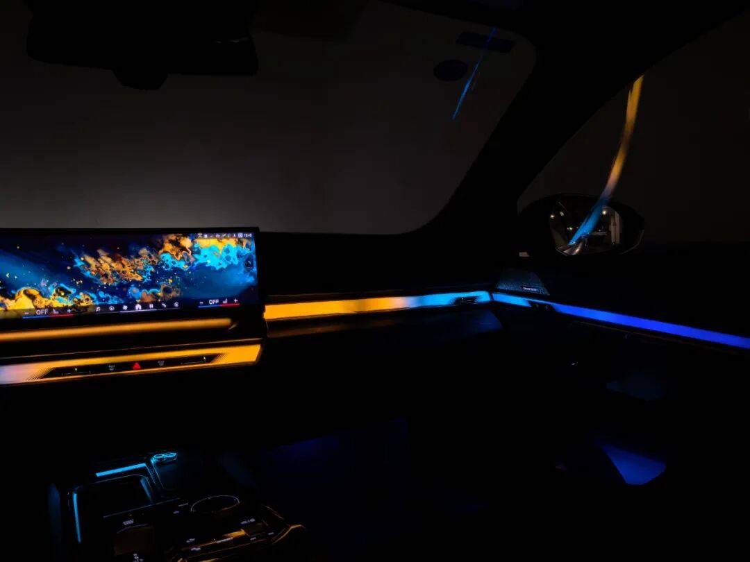 相信各位对530li的车内已经非常熟悉了,环抱前排的璀璨水晶氛围灯带,针对中国市场特殊加厚的前后排座椅,还有一个选装的个性定制款流金饰条搭配高级木饰。这款车内饰条的观感很是不错,看腻了拉丝铝合金饰条和千篇一律的开孔木纹饰条后倍感新鲜。