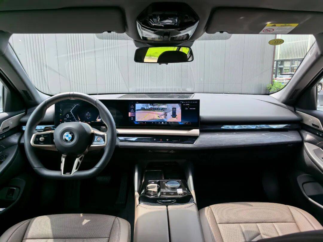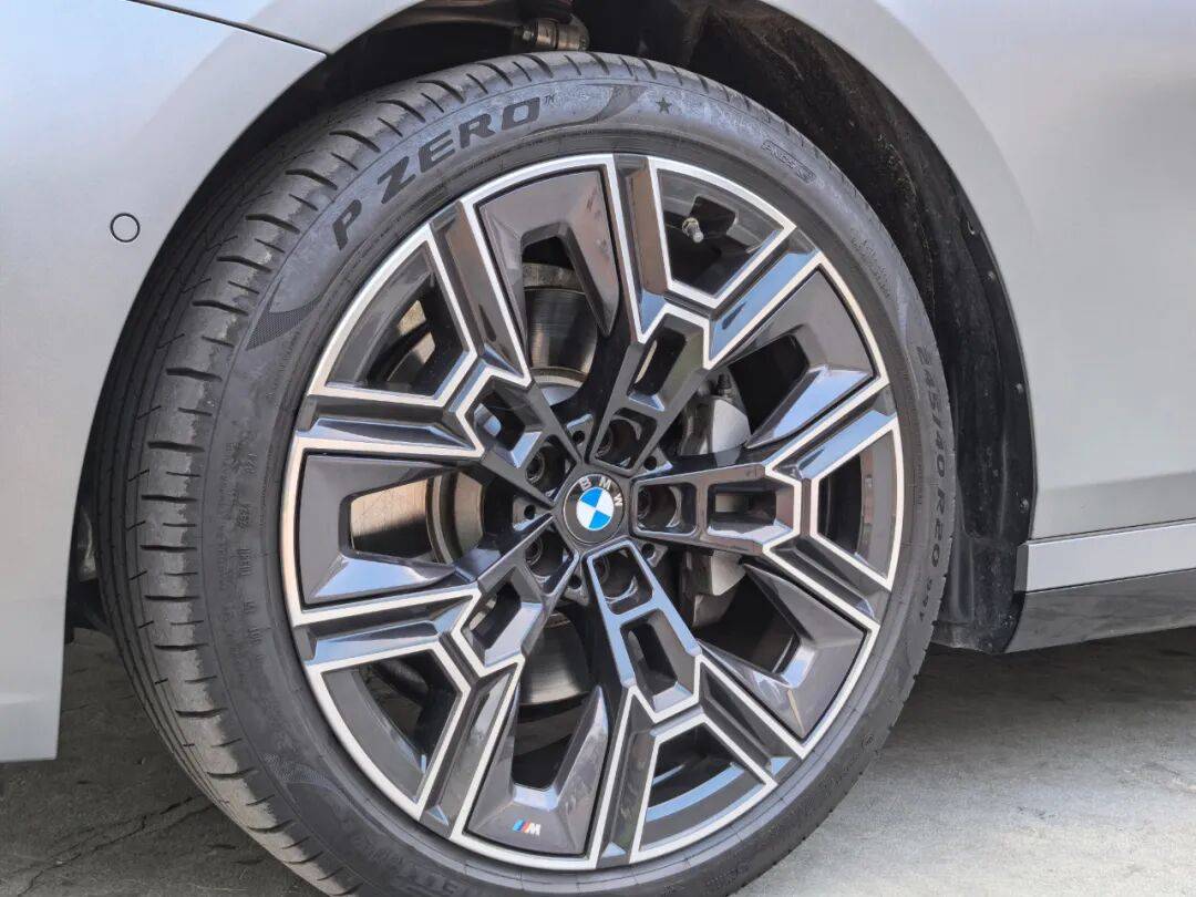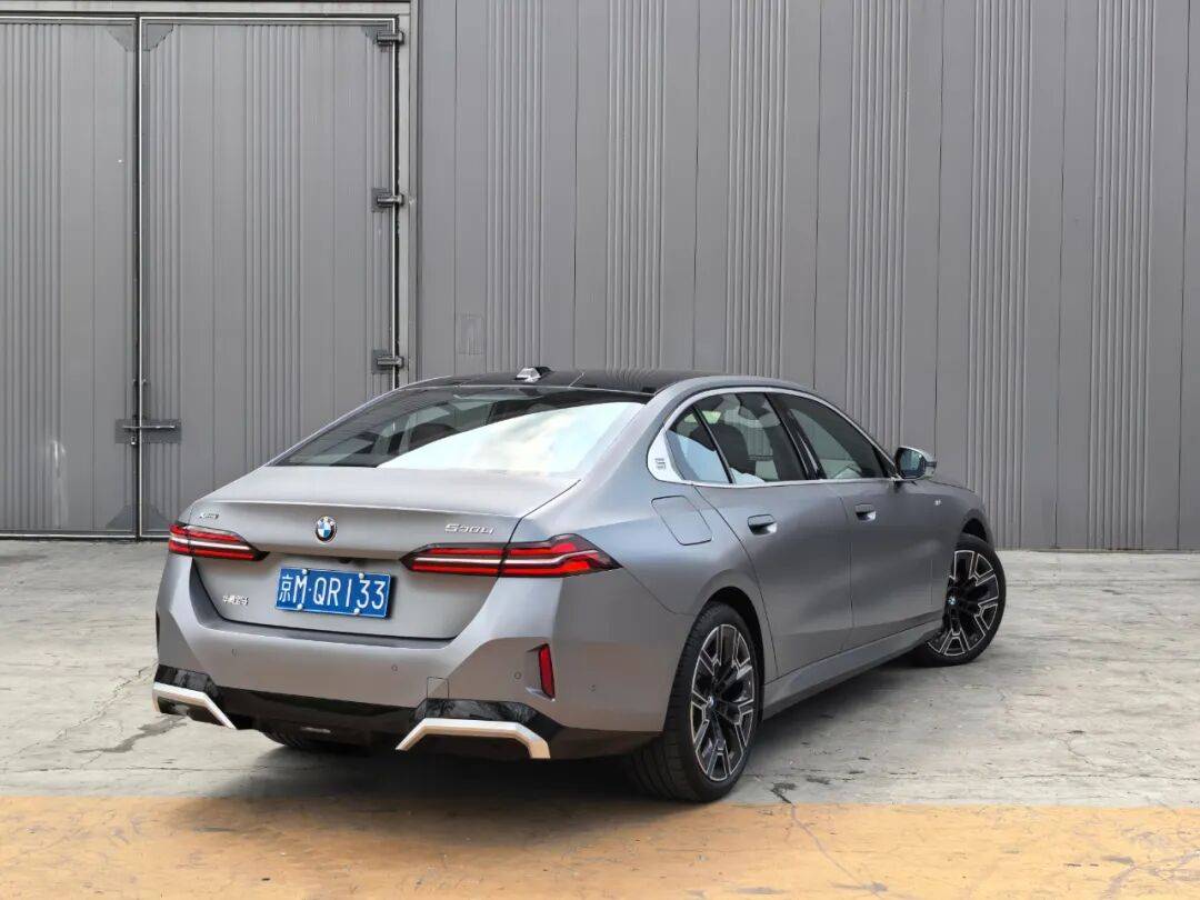 我相信各位看官对于这一代5系车型的外观已经非常熟悉了,美丑因人而异,我在此不多做评价。磨砂纯灰色的车漆搭配939m双色运动型轮毂很是协调,20英寸的“大脚”足够吸睛,让车身侧面的视觉效果一下提升了一个档次,视觉重心也会有所降低。这台试驾车的车身饰条采用了标配的磨砂银色组件,在这个颜色和轮毂的搭配上很上档次,要比泰坦金和曜夜组件更显尊崇感。